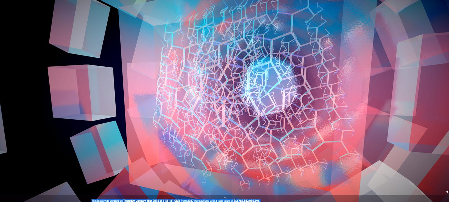 Explore Bitcoin in this interactive audio-visual feast. Data visualization of the technology underpinning blockchain and every transaction ever made.